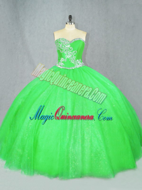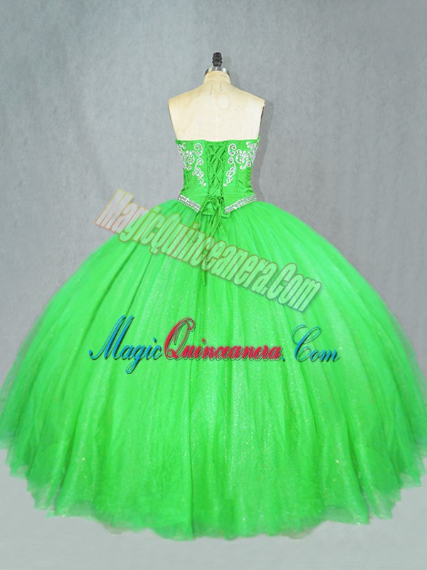 Floor Length Lace Up Quince Ball Gowns for Sweet 16 and Quinceanera with Beading
