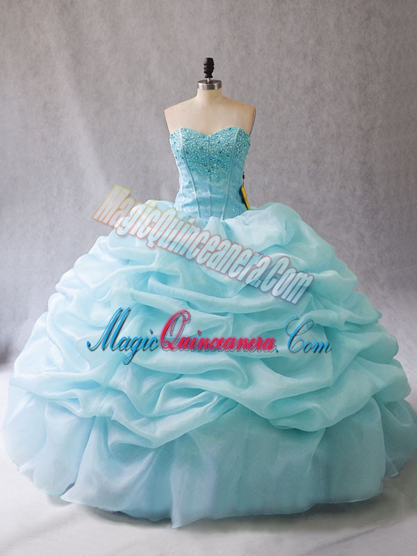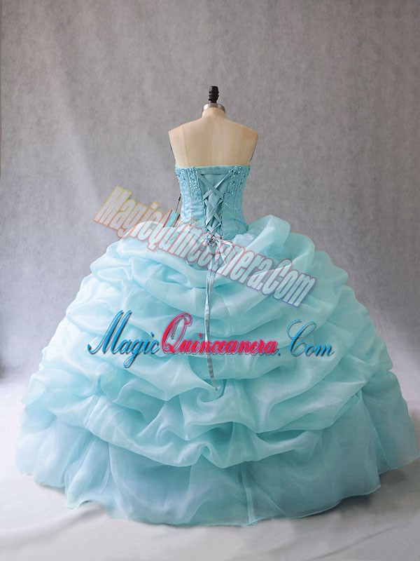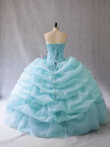 Floor Length Lace Up Quinceanera Dress Aqua Blue for Sweet 16 and Quinceanera with Beading and Pick Ups
