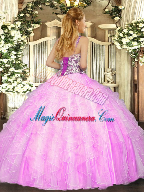 Floor Length Lace Up Quinceanera Gowns Baby Blue for Sweet 16 and Quinceanera with Beading and Ruffles