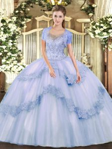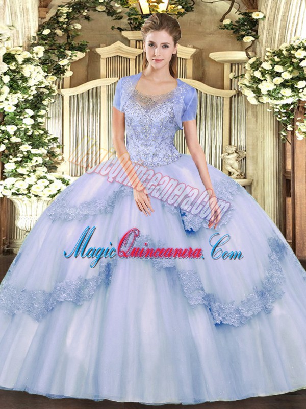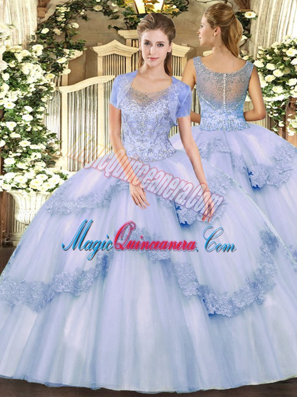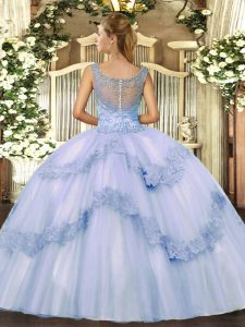 Floor Length Lavender Quinceanera Dress Scoop Sleeveless Clasp Handle