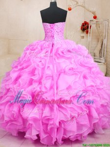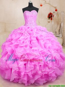 Floor Length Lilac 15 Quinceanera Dress Organza Sleeveless Beading and Ruffles