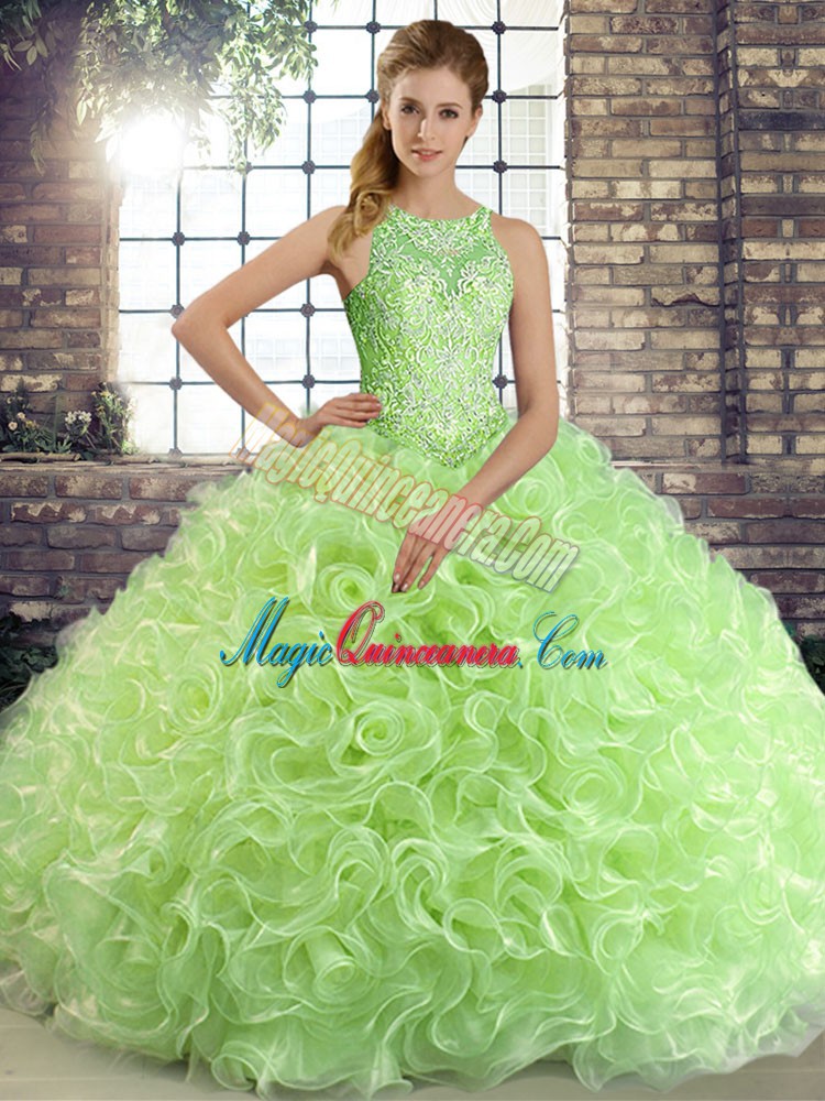 Floor Length Quince Ball Gowns Fabric With Rolling Flowers Sleeveless Beading