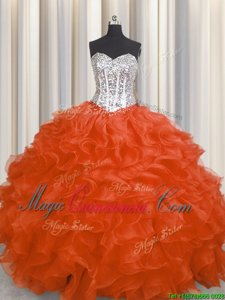 Floor Length Red Vestidos de Quinceanera Sweetheart Sleeveless Lace Up