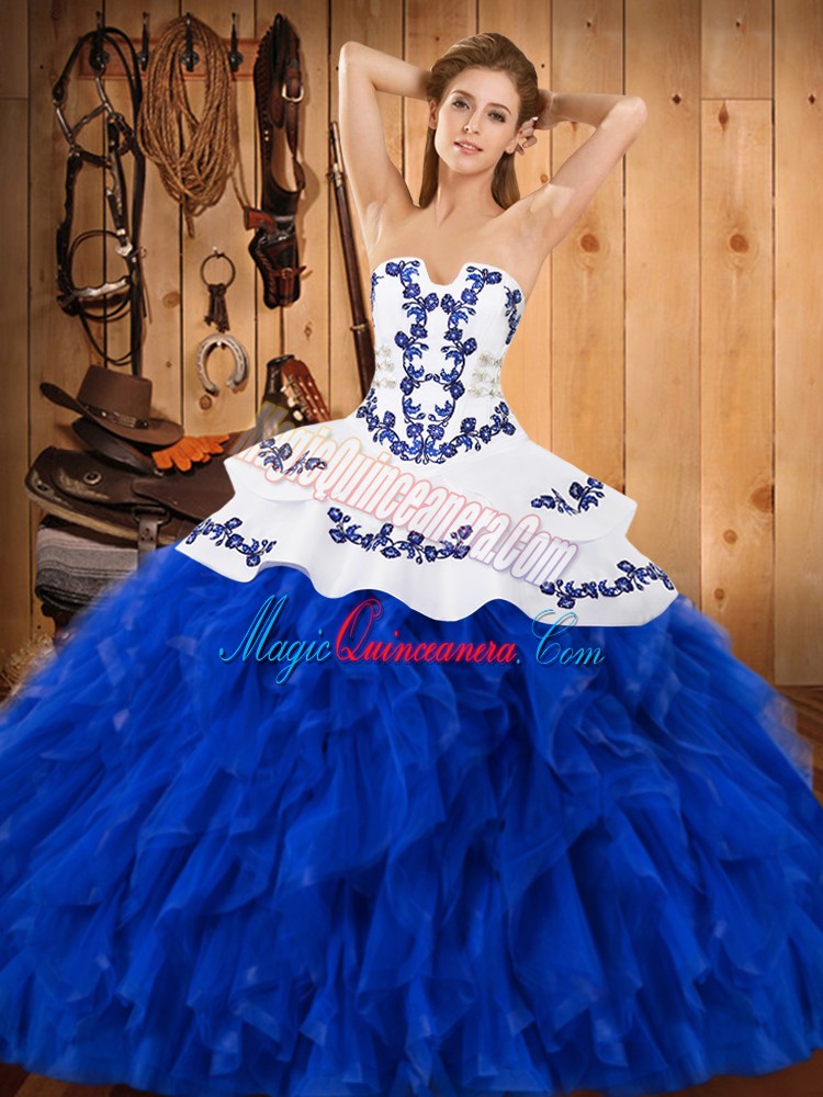 Floor Length Royal Blue Quince Ball Gowns Strapless Sleeveless Lace Up