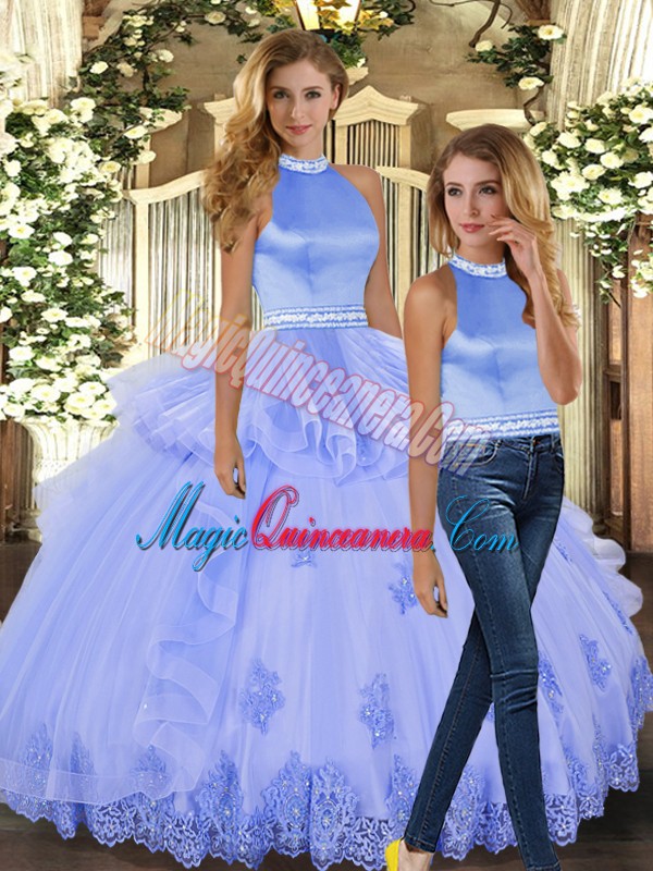 Floor Length Two Pieces Sleeveless Lavender Sweet 16 Dress Backless
