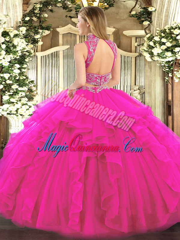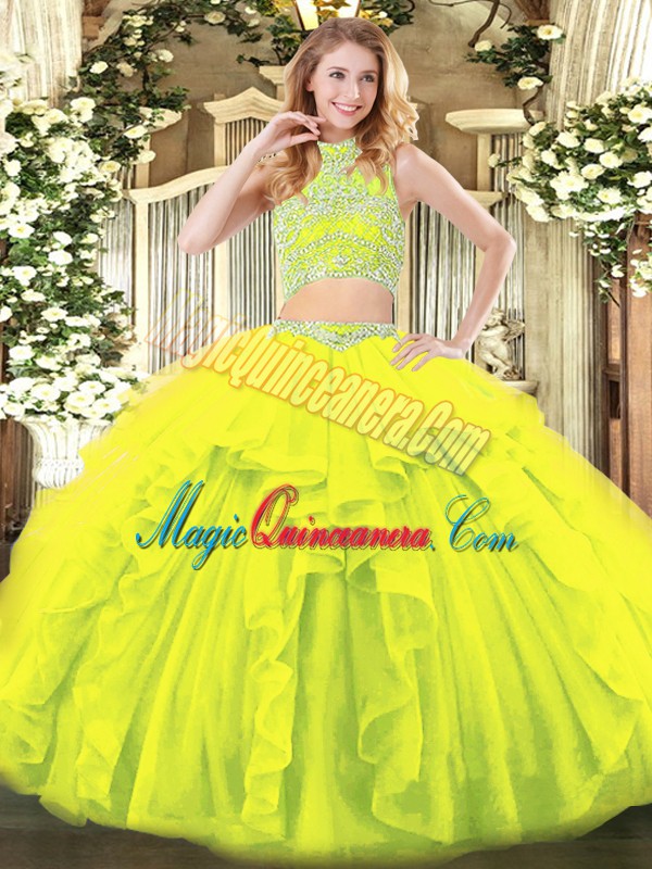 Floor Length Two Pieces Sleeveless Yellow Green Sweet 16 Dress Backless