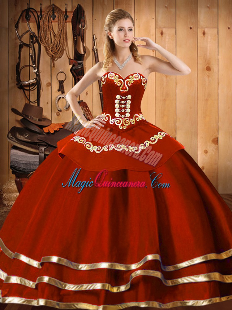Floor Length Wine Red Quinceanera Dresses Organza Sleeveless Embroidery