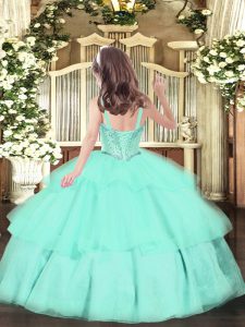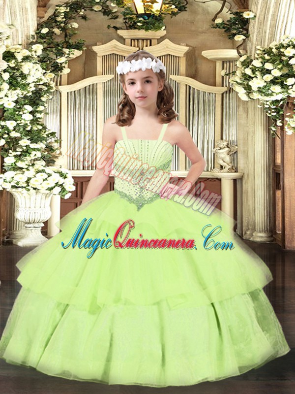 , Floor Length Yellow Green Pageant Gowns For Girls Straps Sleeveless Lace Up