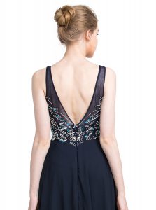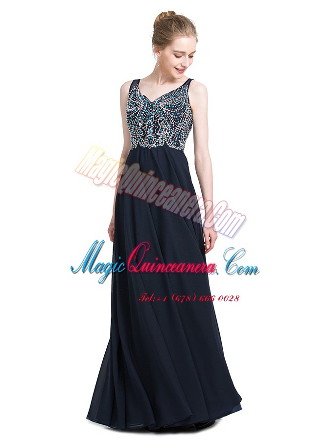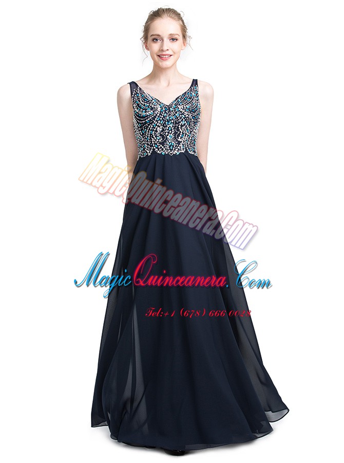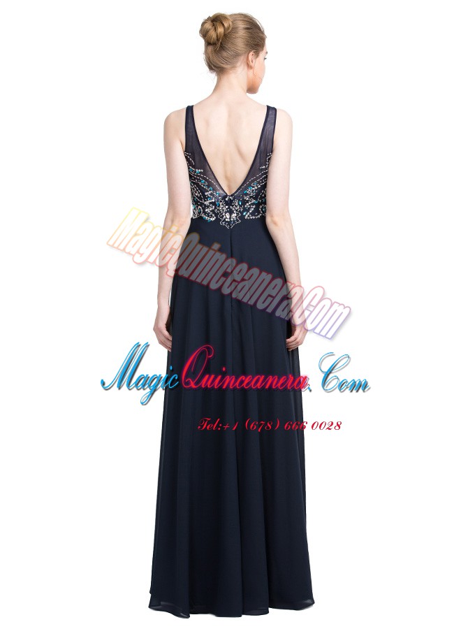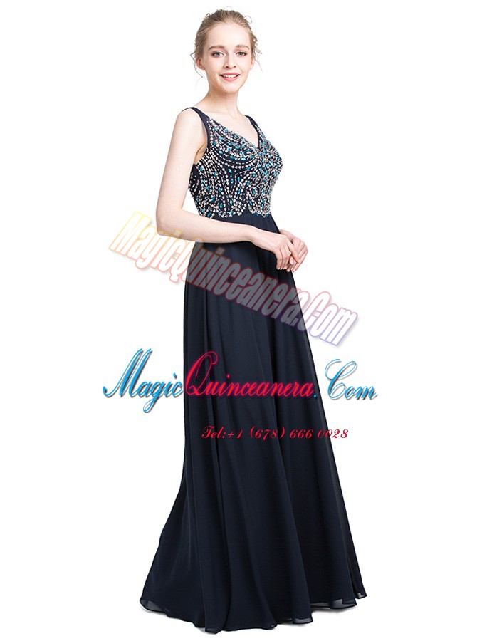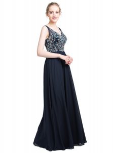 , Floor Length Zipper Prom Dress Black for Prom and Party with Beading