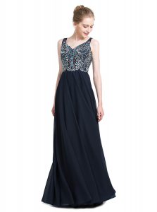 Floor Length Zipper Prom Dress Black for Prom and Party with Beading