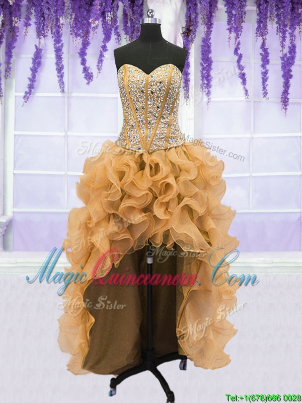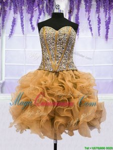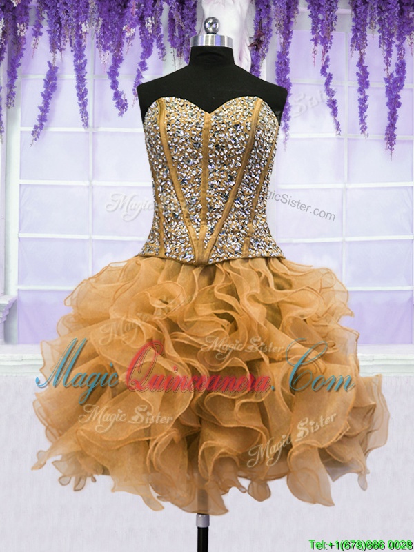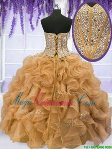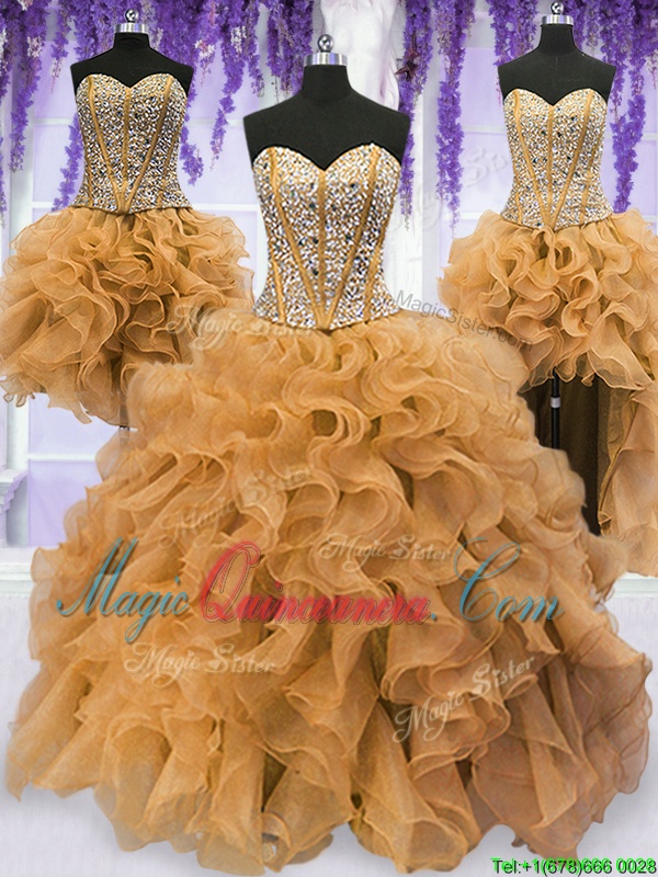 Four Piece Gold 15 Quinceanera Dress Military Ball and Sweet 16 and Quinceanera and For with Beading and Ruffles Sweetheart Sleeveless Lace Up
