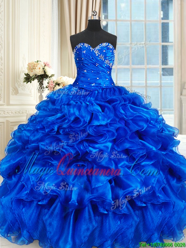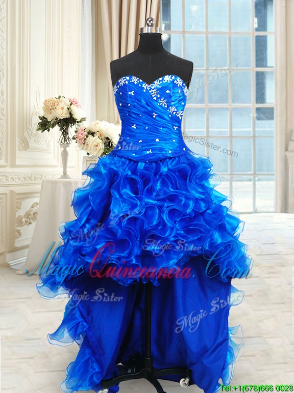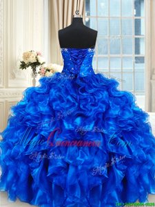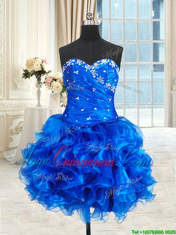 Four Piece Royal Blue Sweetheart Neckline Beading and Ruffles Quinceanera Dress Sleeveless Lace Up
