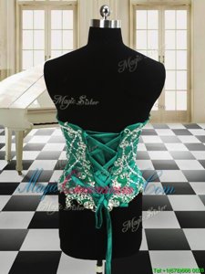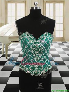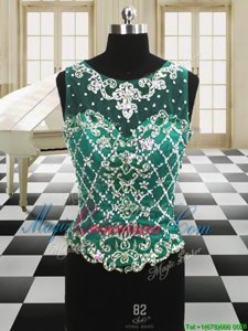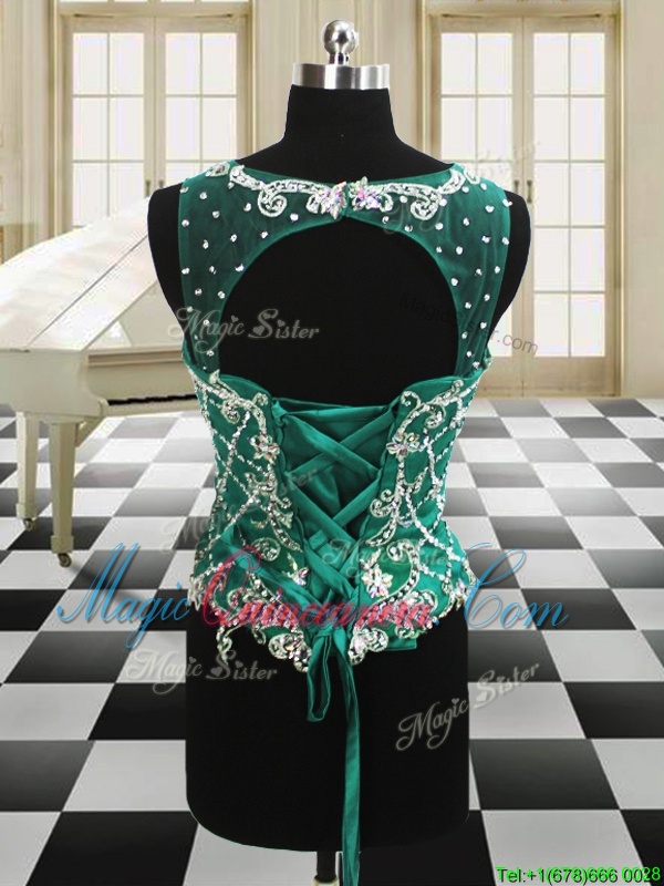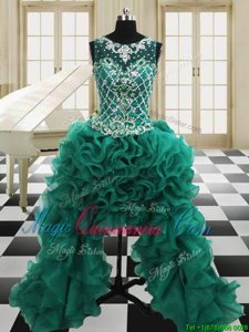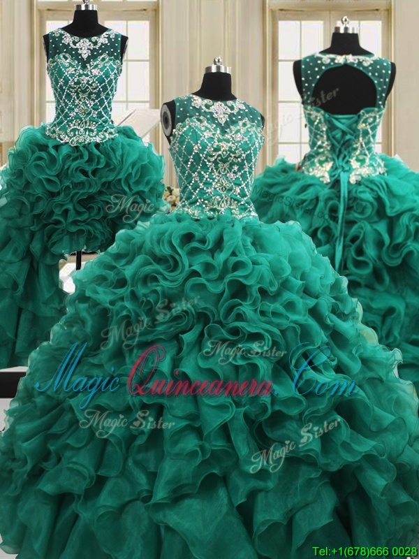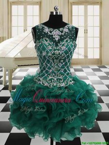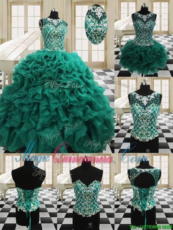Four Piece Scoop Sleeveless Floor Length Beading and Ruffles Lace Up Quinceanera Gowns with Dark Green