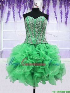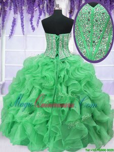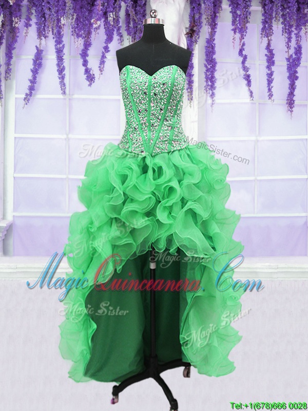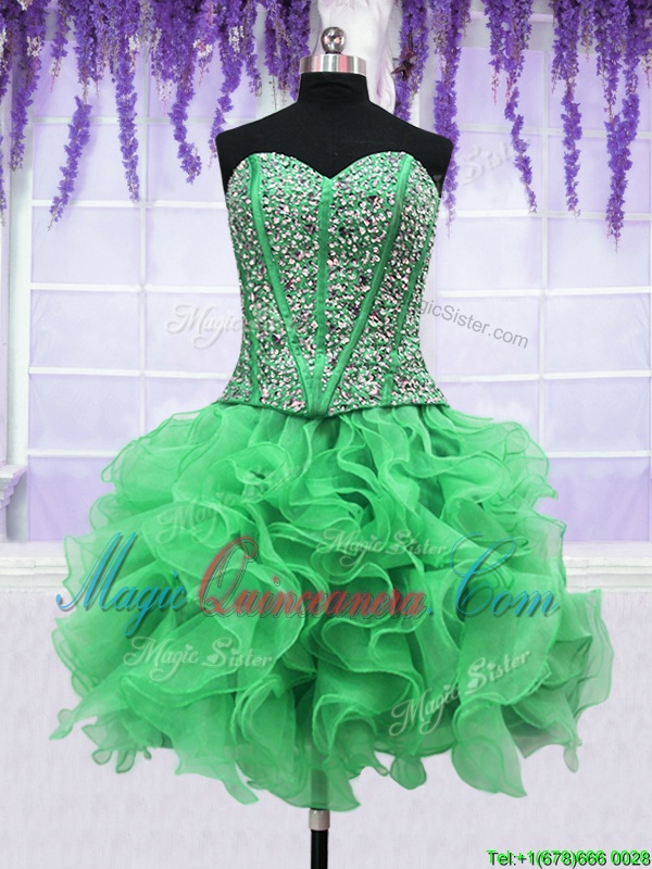 , Four Piece Sleeveless Beading and Ruffles Lace Up 15th Birthday Dress