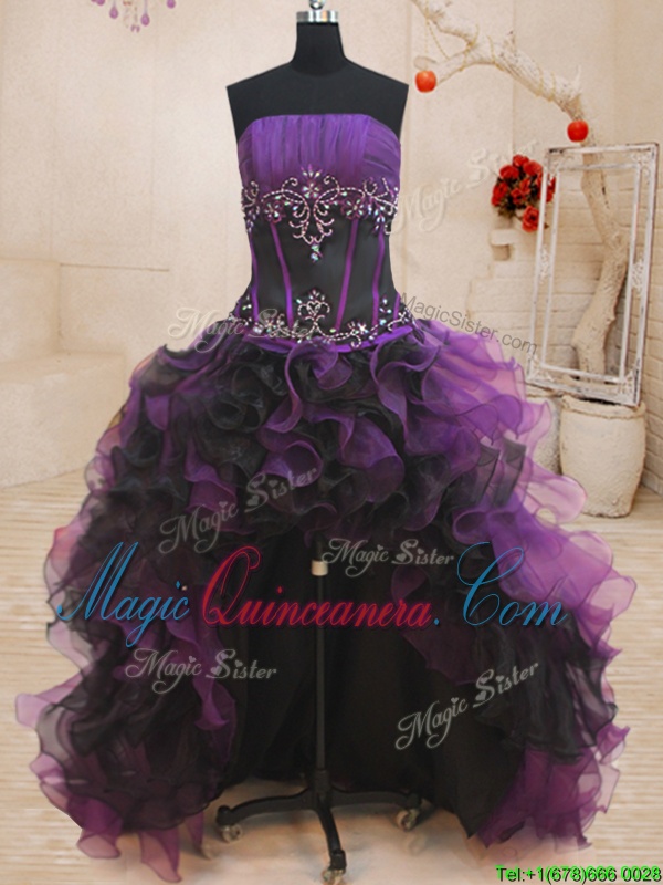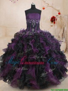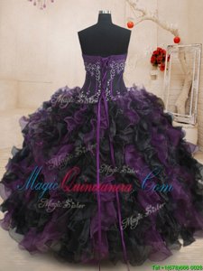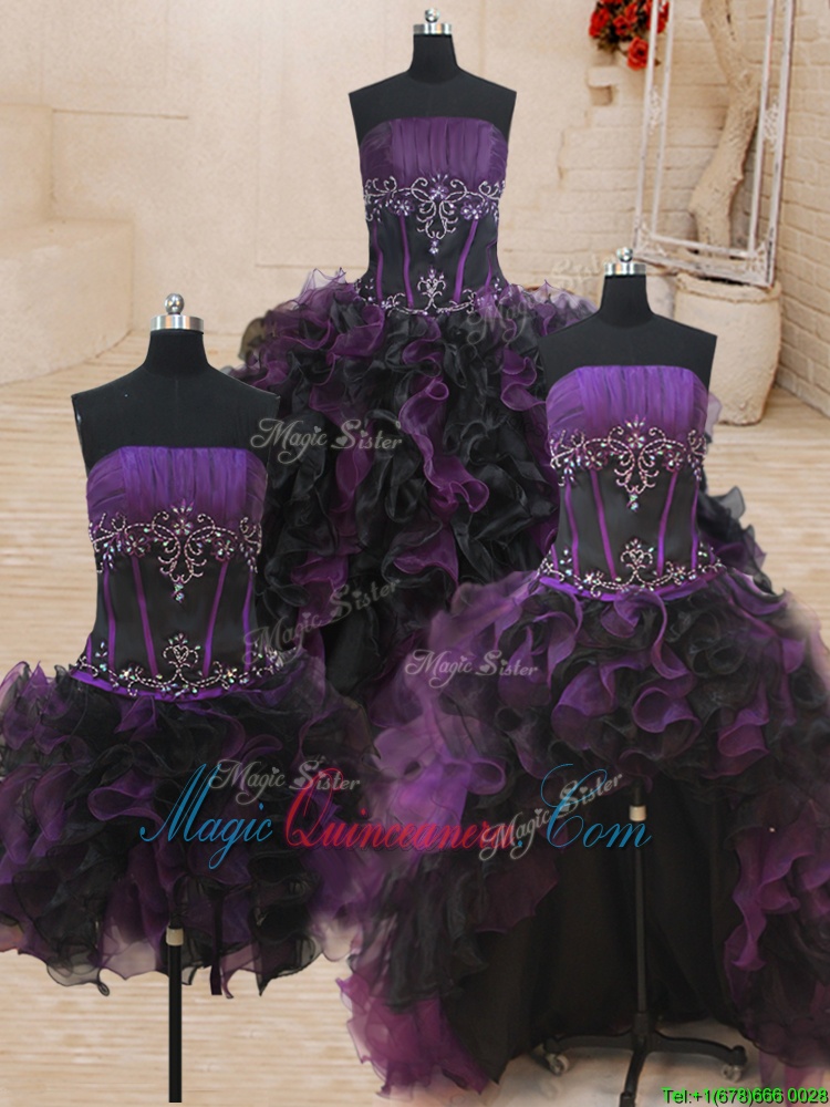 Four Piece Sleeveless Lace Up Floor Length Beading and Ruffles Quinceanera Gown