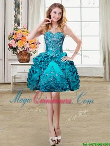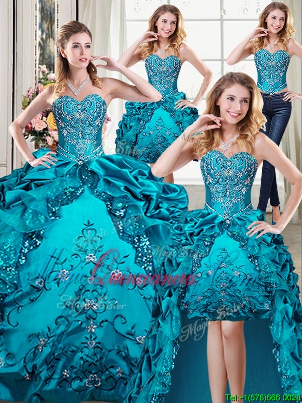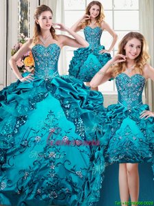 Four Piece Teal Organza and Taffeta Lace Up Sweetheart Sleeveless Floor Length Sweet 16 Quinceanera Dress Beading and Embroidery and Pick Ups