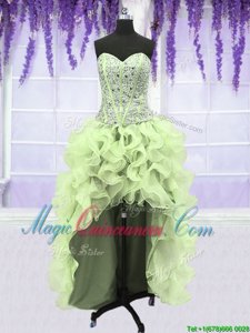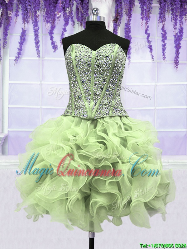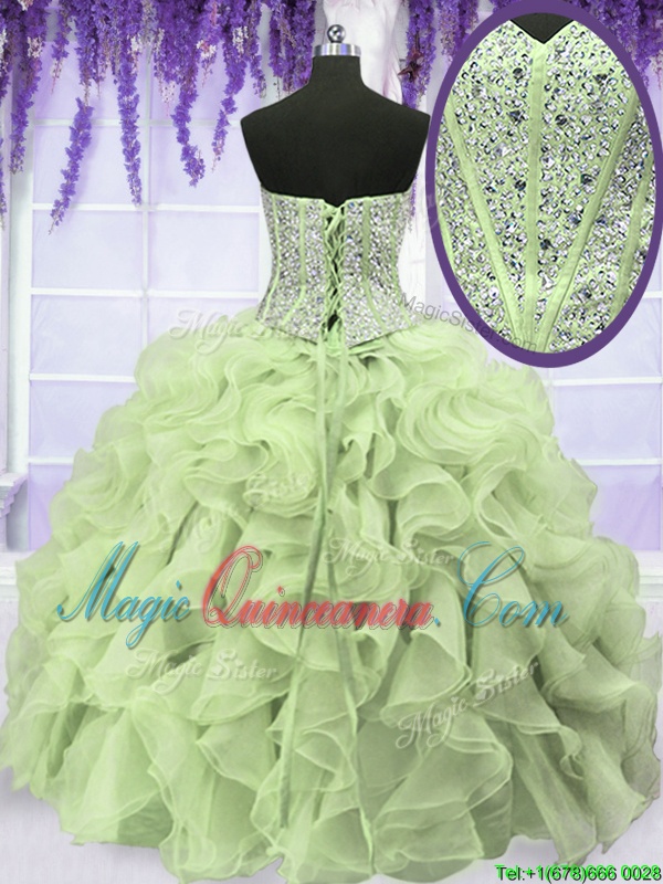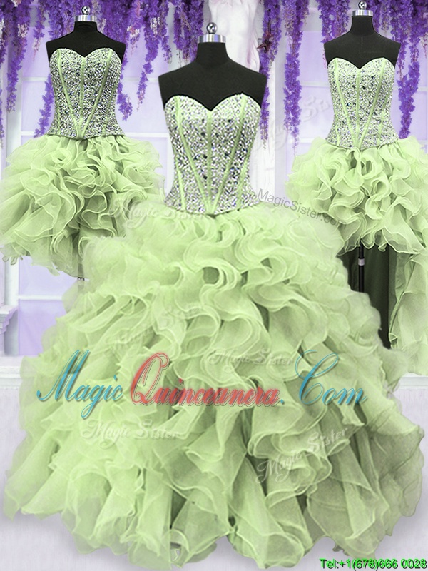 Four Piece Yellow Green Organza Lace Up Sweetheart Sleeveless Floor Length Quinceanera Gowns Ruffles and Sequins
