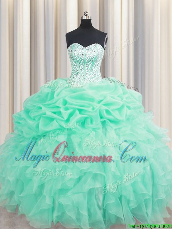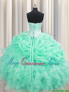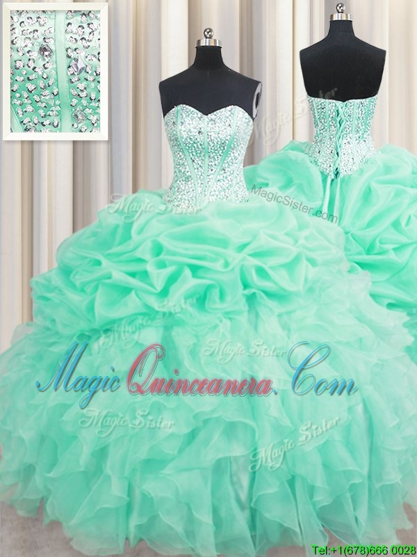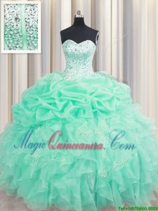 Free and Easy Apple Green Sweetheart Neckline Beading and Ruffles and Pick Ups Sweet 16 Dresses Sleeveless Lace Up