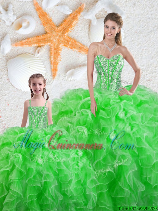 Fashion Organza Sweetheart Sleeveless Lace Up Beading and Ruffles Vestidos de Quinceanera in Fuchsia