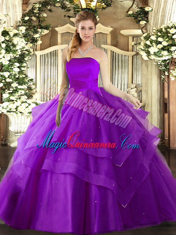 Free and Easy Floor Length Ball Gowns Sleeveless Eggplant Purple Quinceanera Dress Lace Up