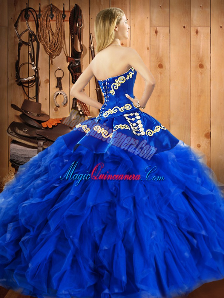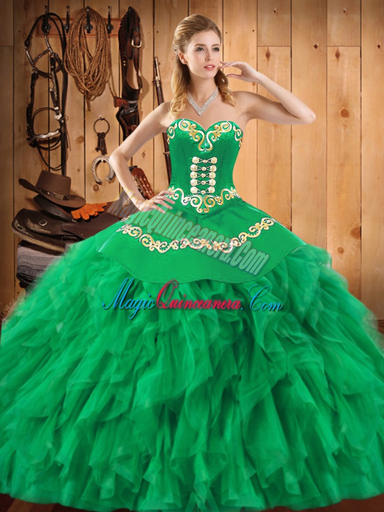 Free and Easy Floor Length Lace Up Quinceanera Dress Green for Military Ball and Sweet 16 and Quinceanera with Embroidery and Ruffles
