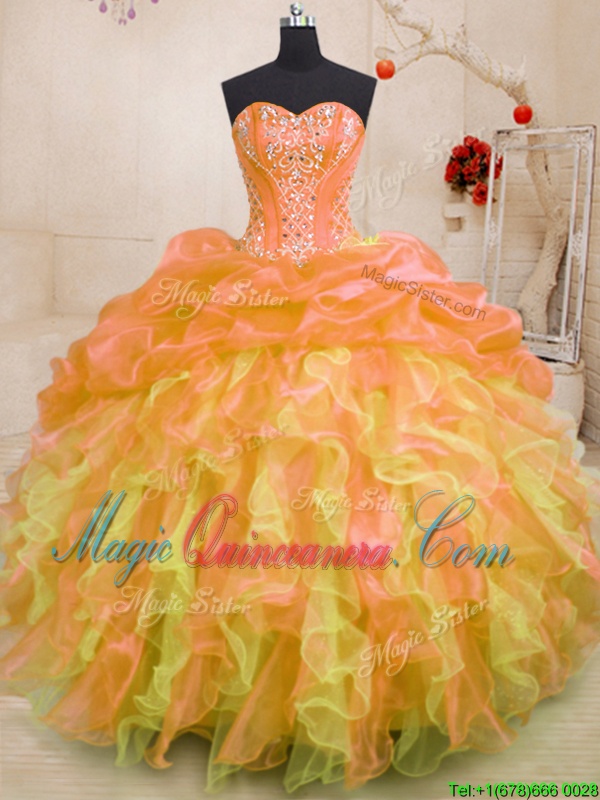 Free and Easy Floor Length Lace Up Quinceanera Dresses Multi-color and In for Military Ball and Sweet 16 and Quinceanera with Beading and Ruffles