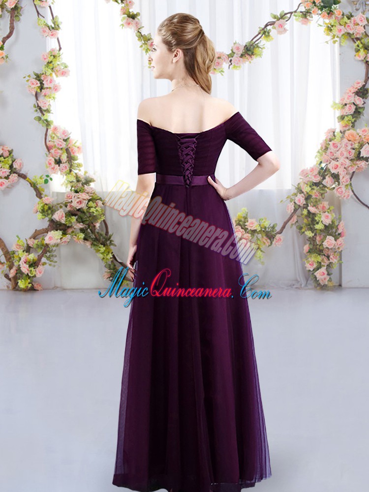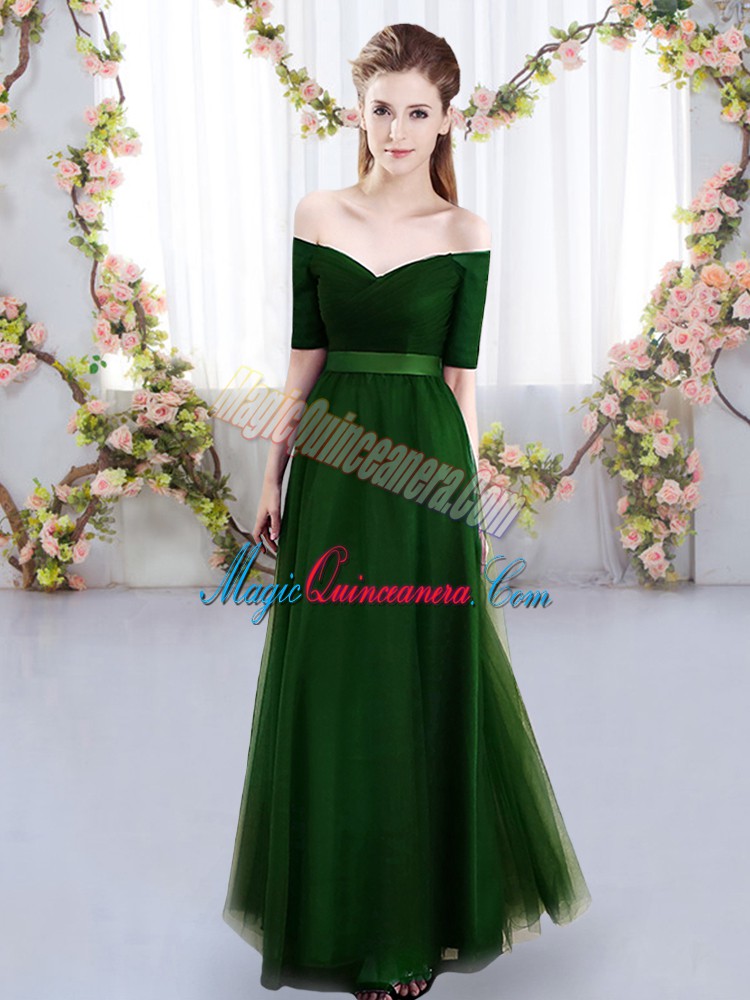 Free and Easy Green Lace Up Quinceanera Court Dresses Ruching Short Sleeves Floor Length