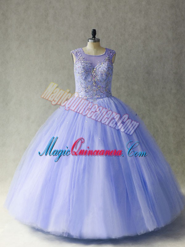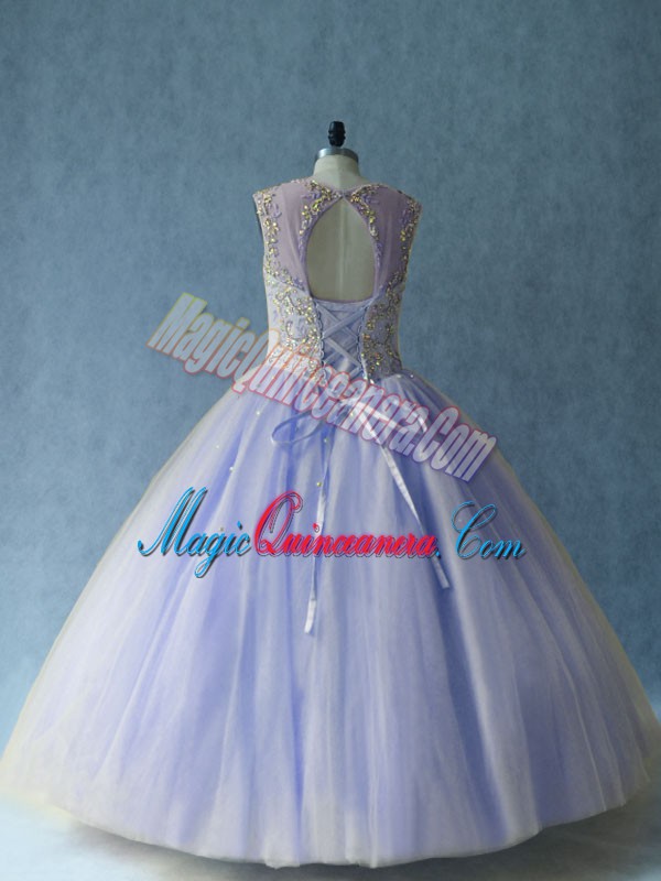 Free and Easy Lavender Scoop Neckline Beading 15th Birthday Dress Sleeveless Lace Up