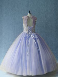 , Free and Easy Lavender Scoop Neckline Beading 15th Birthday Dress Sleeveless Lace Up