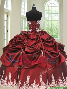 Free and Easy Pick Ups Floor Length Wine Red Sweet 16 Quinceanera Dress Sweetheart Sleeveless Lace Up