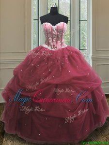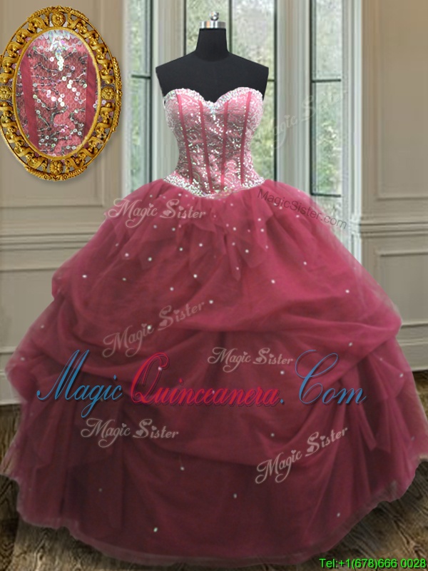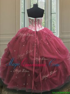 Free and Easy Sequins Pick Ups Sweetheart Sleeveless Lace Up 15th Birthday Dress Burgundy Organza