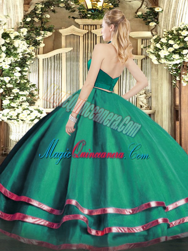 , Fuchsia Halter Top Zipper Ruffled Layers 15 Quinceanera Dress Sleeveless