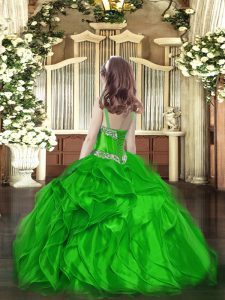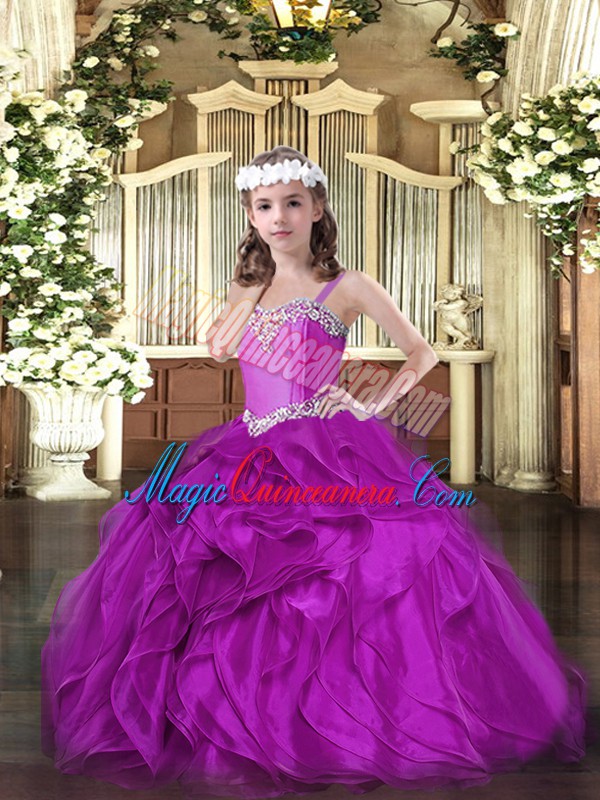 Fuchsia Lace Up Pageant Dress for Girls Beading and Ruffles Sleeveless Floor Length