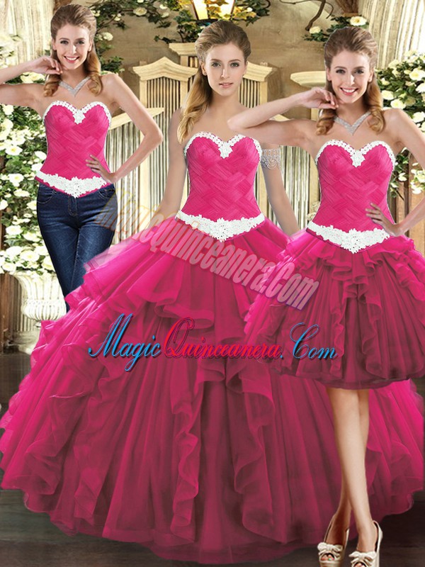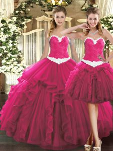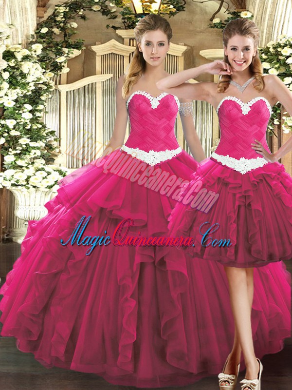 Fuchsia Lace Up Sweetheart Ruffles 15th Birthday Dress Tulle Sleeveless