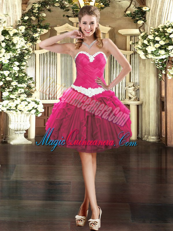, Fuchsia Lace Up Sweetheart Ruffles 15th Birthday Dress Tulle Sleeveless