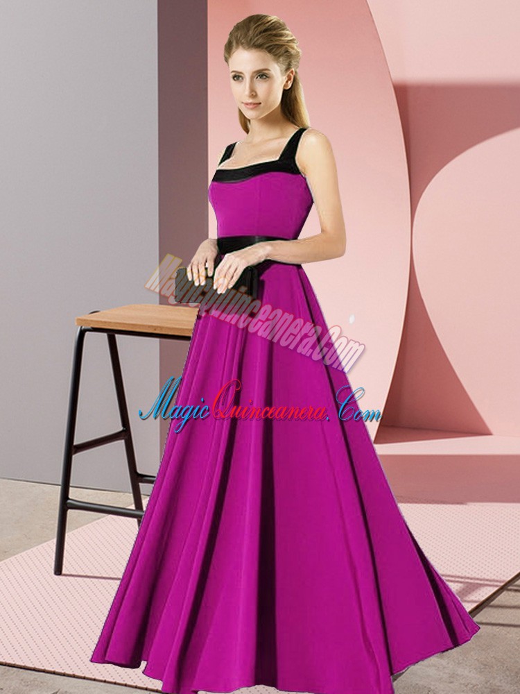 Fuchsia Sleeveless Chiffon Zipper Quinceanera Dama Dress for Wedding Party