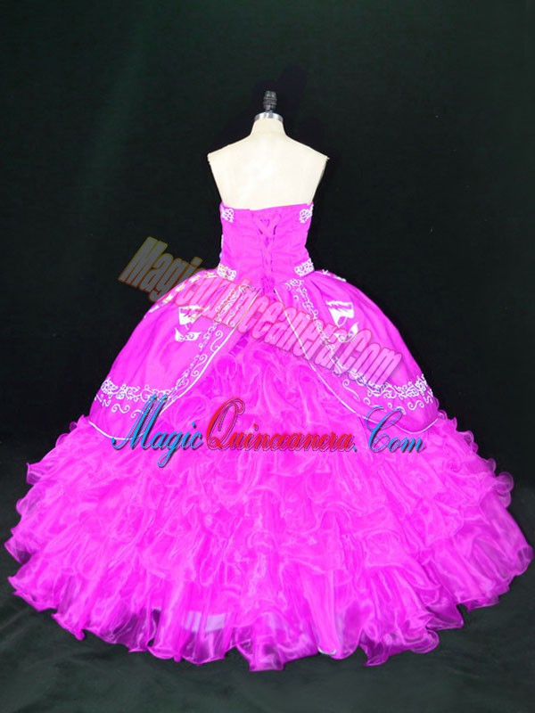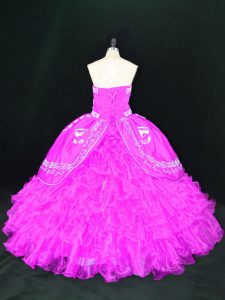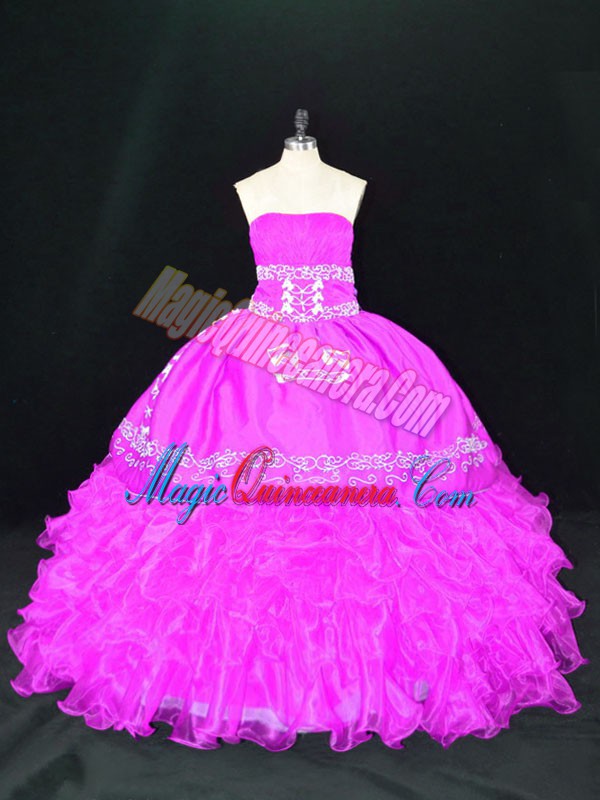 Fuchsia Sleeveless Embroidery and Ruffles Floor Length 15 Quinceanera Dress