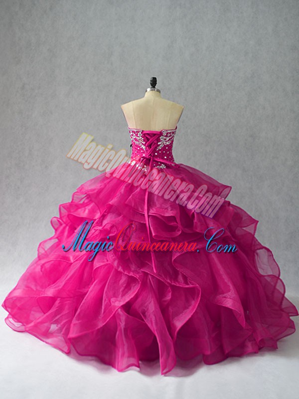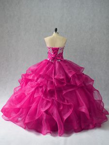 , Fuchsia Sweetheart Neckline Beading and Ruffles Quinceanera Dress Sleeveless Lace Up