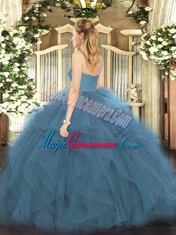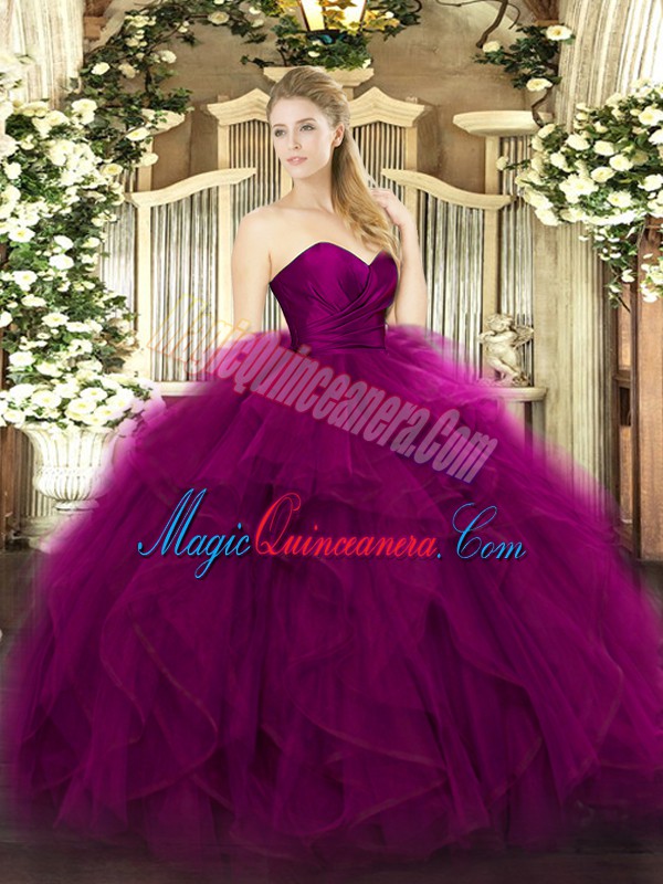 Fuchsia Tulle Zipper Sweetheart Sleeveless Floor Length Sweet 16 Dress Ruffles