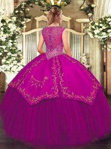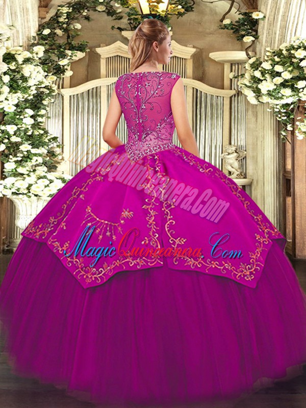, Fuchsia V-neck Neckline Beading and Embroidery Quinceanera Dress Sleeveless Zipper