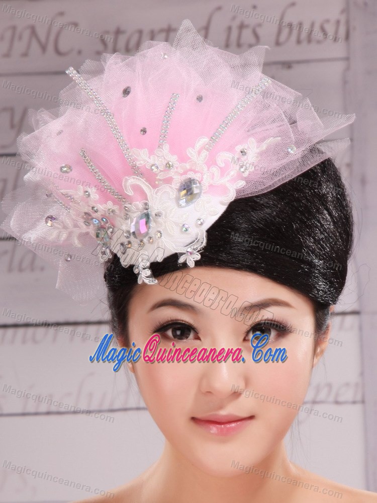 Fully Handmade Beaded and Appliques Decorate Baby Pink Headpieces