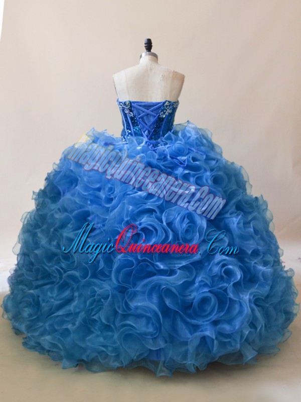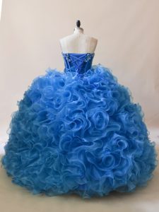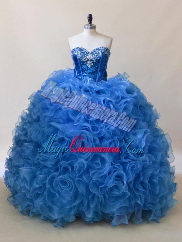 Glamorous Blue Sweetheart Lace Up Ruffles and Sequins 15th Birthday Dress Sleeveless