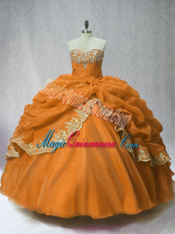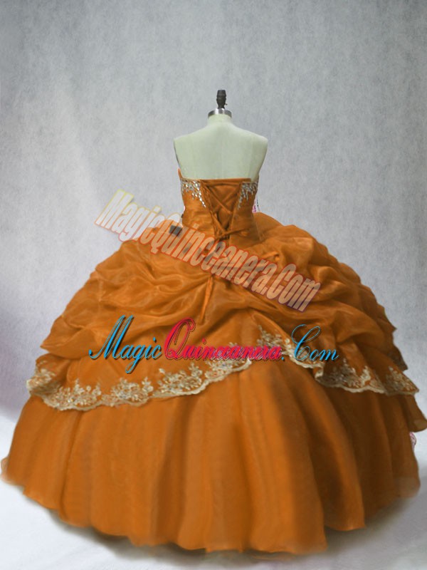 Glamorous Brown Sleeveless Floor Length Beading and Appliques and Pick Ups Lace Up Quinceanera Gown