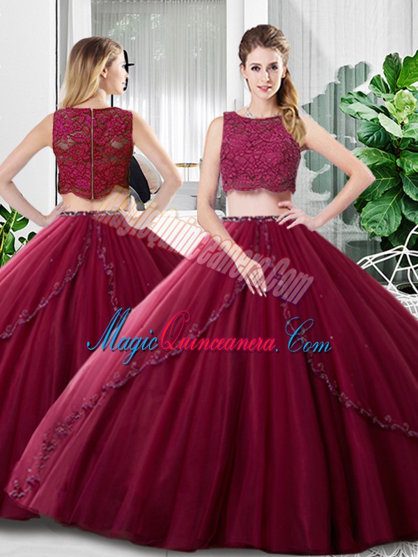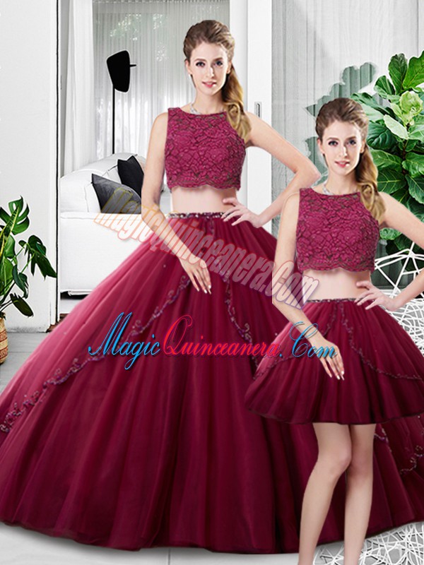 , Glamorous Lace and Ruching Sweet 16 Dresses Fuchsia Zipper Sleeveless Floor Length