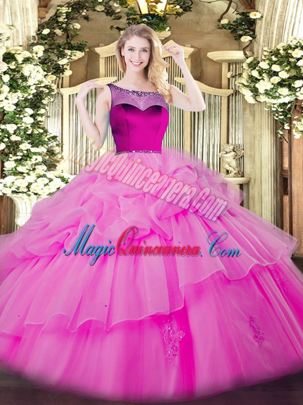 Glamorous Lilac Quinceanera Gowns Sweet 16 and Quinceanera with Beading and Appliques and Pick Ups Scoop Sleeveless Zipper