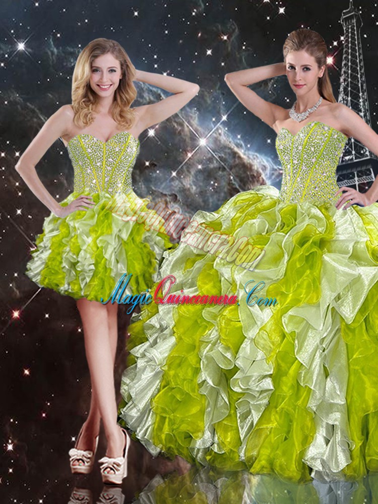 Olive Green Sleeveless Organza Lace Up Pageant Dress for Teens for Quinceanera and Wedding Party