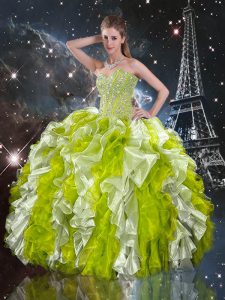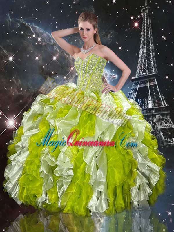 Glamorous Multi-color Ball Gown Prom Dress Military Ball and Sweet 16 and Quinceanera with Beading and Ruffles Sweetheart Sleeveless Lace Up