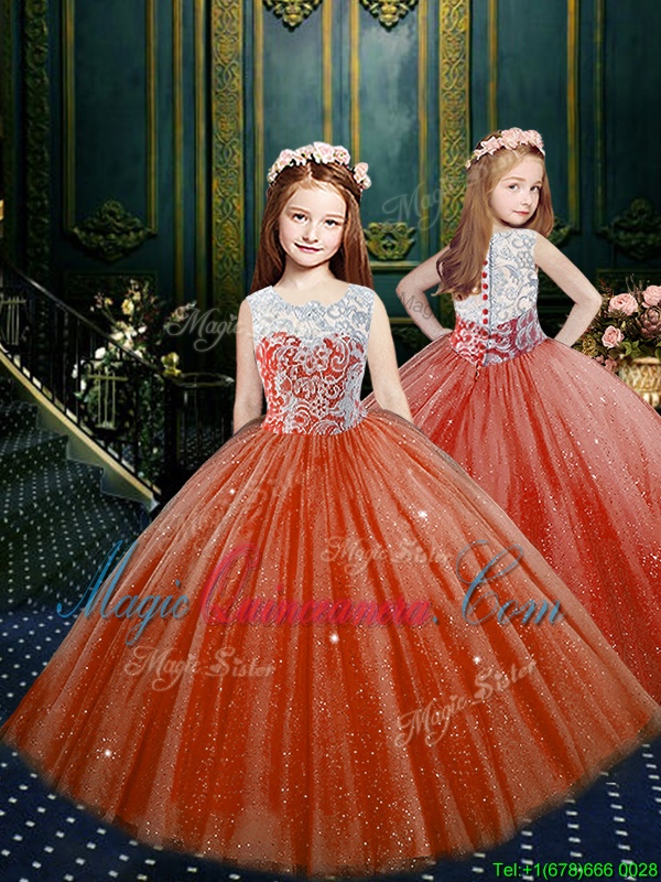 Glamorous Orange Red Zipper Quinceanera Gowns Lace Sleeveless Floor Length
