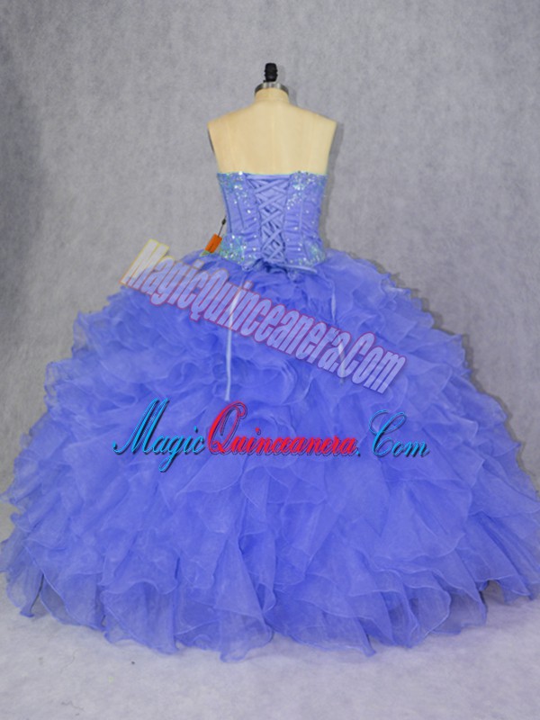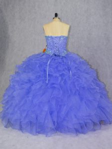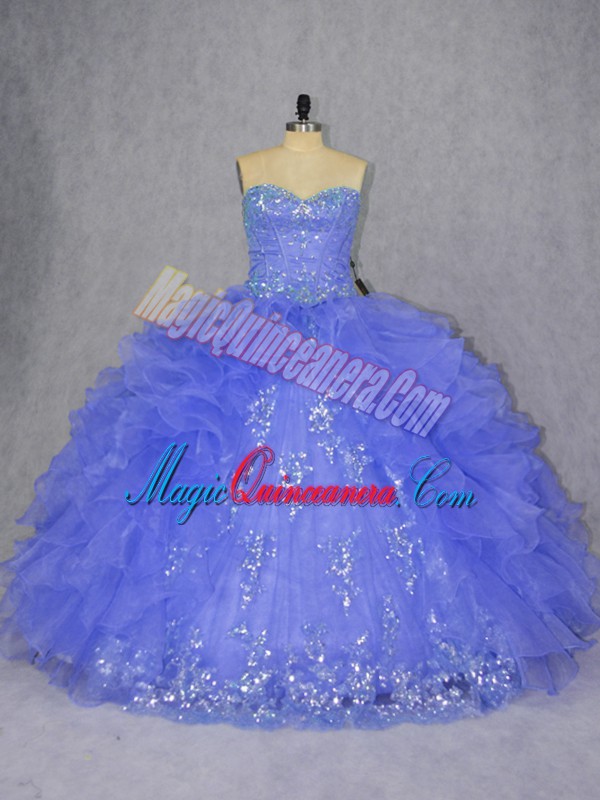 Glamorous Purple Sweetheart Lace Up Appliques and Ruffles 15 Quinceanera Dress Sleeveless