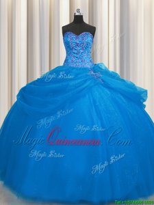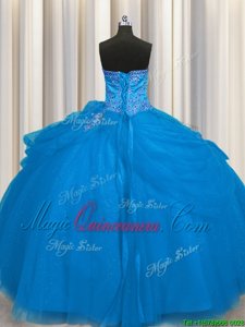 Glamorous Really Puffy Blue Sleeveless Beading Floor Length Quinceanera Dress